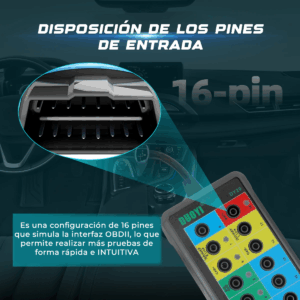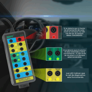 - Permite acceder fácilmente a cada uno de los 16 pines del conector mientras la herramienta de escaneo se comunica con el vehículo.